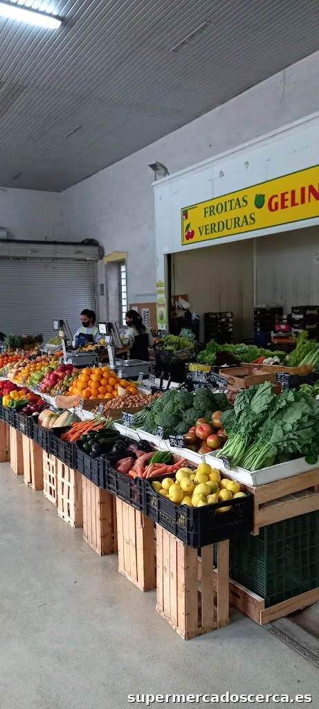 Supermercado con carnicería, peixaría, charcutería e froitería.
