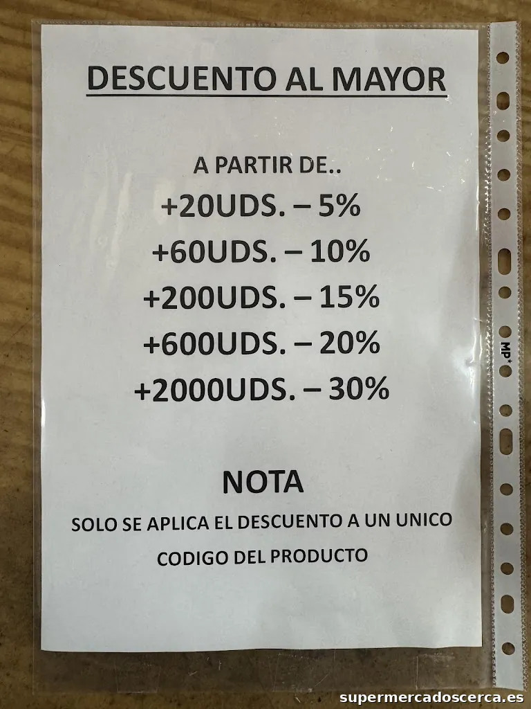 Supermercado Panadería Carnicería Xarcuteria Jamonería Supermercado de descuentos Pescadería Frutería Tienda de alimentación ComercioHorario de apertura: