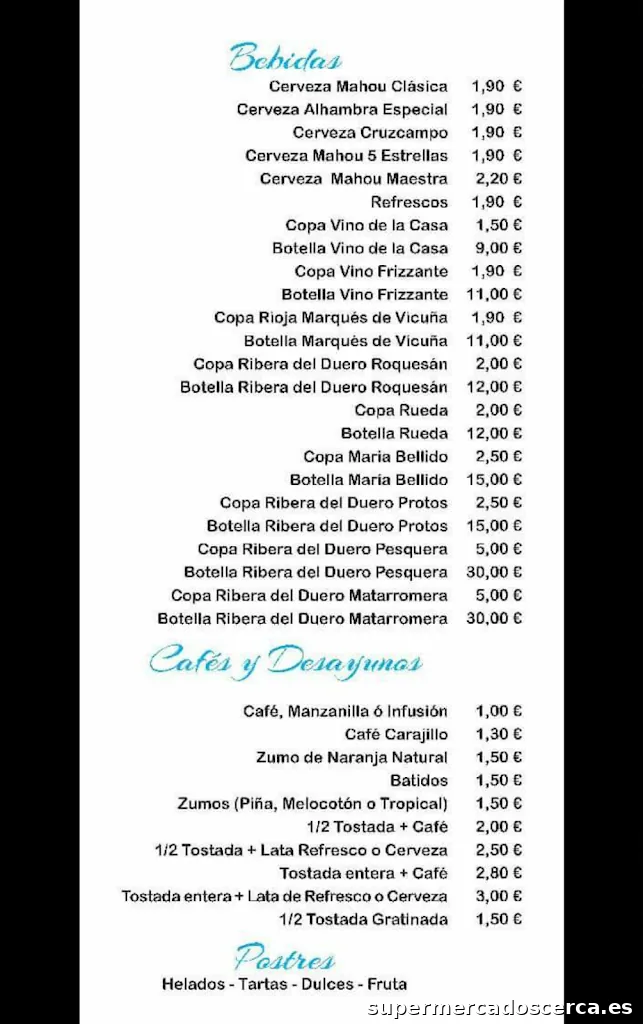 Bar Cafetería Restaurante de cocina españolaHorario de apertura: